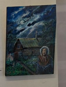 Found an old photo of my mural of Walter a regular at the Leopard Hotel in Burslem, the other picture is my reimagined portrait of Molly Leigh, based on the mural I did of her. Both murals were destroyed when the pub burnt down a couple of years ago. I might try and recreate the Walter one too. The final photo is of my Molly Leigh painting and my Spode circular window painting in the Orme Art Group Exhibition at the Brampton museum and art gallery in Newcastle under Lyme. It’s on at the moment.
