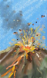Today I painted a fire for the play Who is Molly Leigh…. Not the fire surround or the hearth, or the objects around it, but a piece of cardboard with a brick chimney backing painted on it and a coal fire burning strongly in the grate.