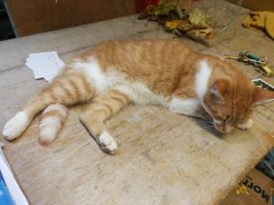 A cat moved into the warehouse where we held out art and craft show. It has a home in a local housing estate but I guess because the warehouse is heated it’s found a place to visit. The main problem is there is a ladder up to the loft space and on Saturday it climbed up and went to sleep!