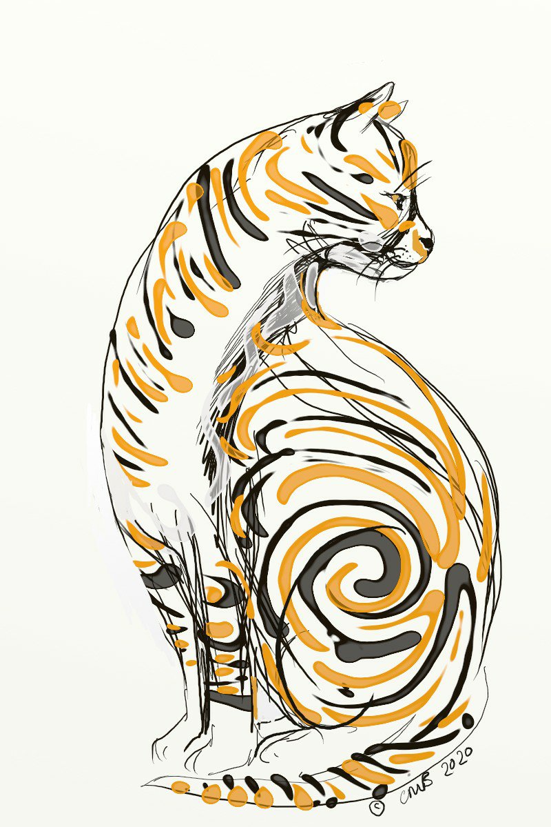 I did this drawing on the ArtRage app. I wanted to create something a bit different, fluid, expressive. Most of my pictures are of black and white cats, but this reminds me of a swirling ice-cream, perhaps ginger and vanilla, or caramel and white salt.