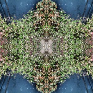 Wildflowers, on the pavement, Stoke. I can almost see green men in this duplicated image.