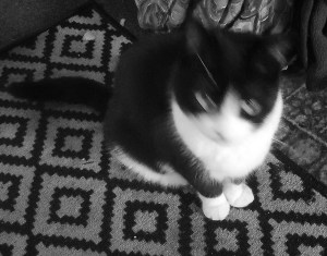 She announces herself as she comes in with a series of miaows and mews, tail high waving in the air like a flag. Claws out she stands to sharpen them in my leg (get off!) this is her usual greeting. Then she rubs her head against my feet that are raised to reduce swelling at the moment. A meep and a purr, then up on my legs and backwards and forwards between the chair arms and my lap, all the while purring loudly.