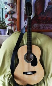 Hi folks, I’m trying to sell hubbys guitar. A friend had a look at it for me. It’s an Oakman basic beginners acoustic guitar. New would be about £70, but second hand, I would be happy to sell it for £40. I’m never going to learn to play it, might make a good gift for someone who wants to learn. Comes with carrying bag and strap and a plectrum.