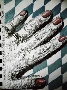 I saw this today, a clothes rail that had hand shapes to hook coats or hats on. I spoke to our choir leader at teatime and as we were chatting I mentioned I liked the funky design…. Turned out her ex husband had made it years ago! It was a commission made for a business man, but when his firm closed it came back to the Barts building and is used for costumes.