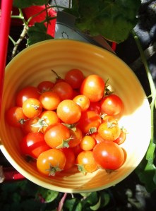 I have a hosta in flower, lilies that are away from where the cats can go (it’s pollen is poisonous to them), a hydrangea, Welsh poppies. I also have an apple tree that my hubby put in that I’m trying to trail horizontally against the fence.