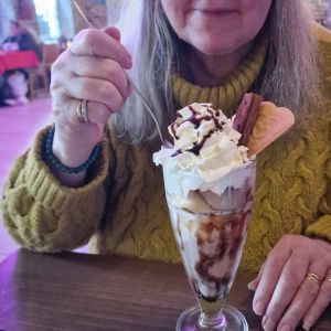 Ice-cream Sundae at the Quarter restaurant at the Spode Site, Stoke on Trent today. I have to say this was a huge amount of ice cream. I felt really naughty, but I’d had some good news so I treated myself to it.