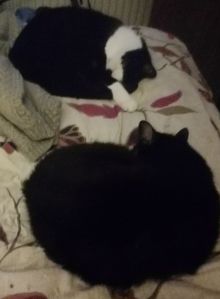 It’d almost 2am, I can’t sleep so I’m watching a silly film and I just looked over to see where the TV remote is and saw him. Now the cat flap has clattered and his sister has come in from outside. I guess she will be looking for a warm chair to sleep on too. Cats cheer me up when I’m feeling really low.