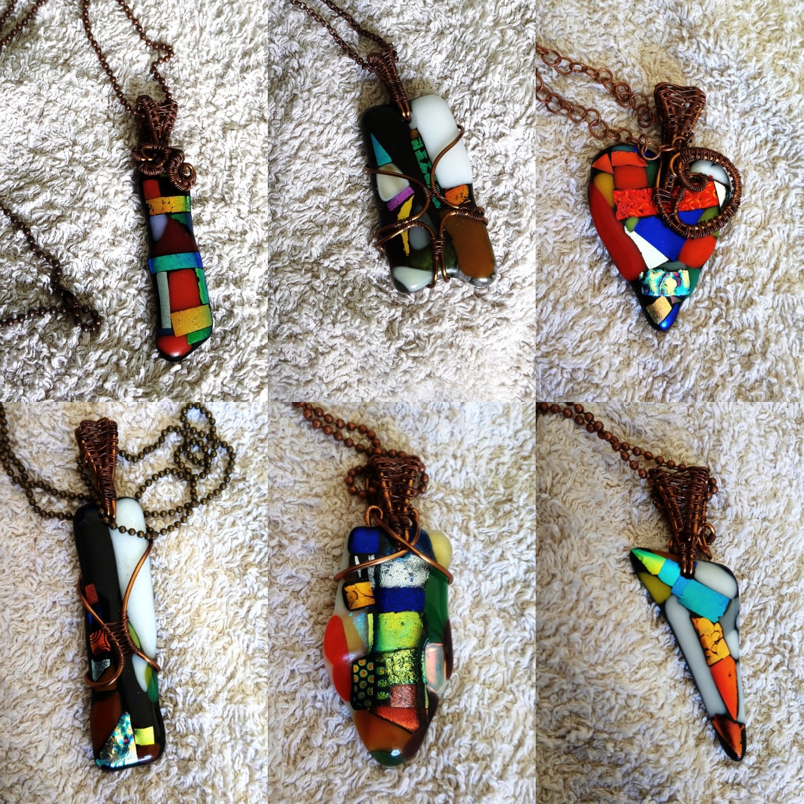 Just found this on my Facebook page of glass cabochons I made in a workshop that my friend did a wireweave around. They each have chains and they were for sale in my craft stall last year. I sold a couple but they are sitting safe in a bag waiting for when I can do it again.