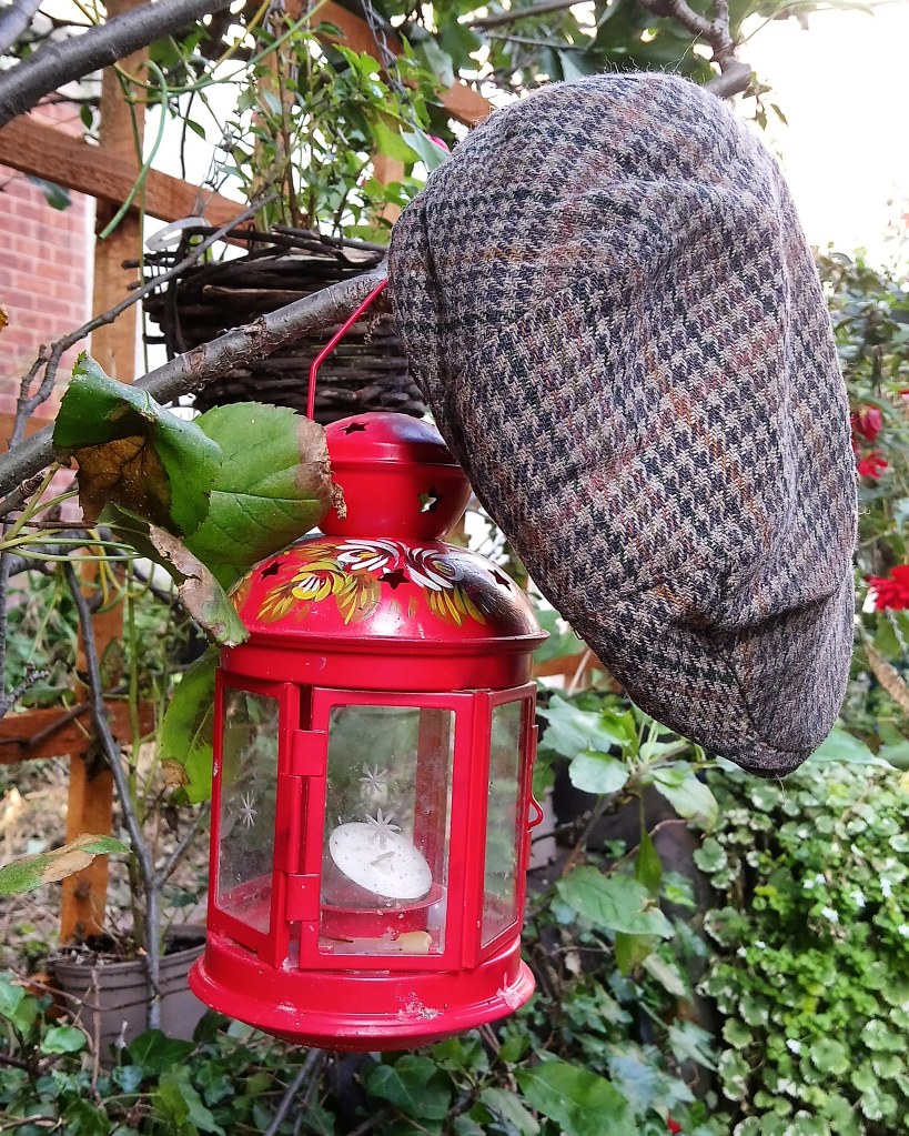 I did the jar late last night, 3am. Couldn’t easily paint inside so got some silver foil and cut our shapes. Fastened it on with loads of sellotape. Then I painted over it with abstract patterns. I painted the top too and then used a bit of matt varnish on it to hold it together a bit more. Finally I twisted some wire to hold a tea light, so I didn’t have to try and light it in the bottom of the jar.