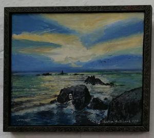I still like this old oil painting I did of lands end twenty or more years ago. I actually painted it from a postcard. Lands End is at the furthest west part of Cornwall which is in turn the furthest west county of England.
