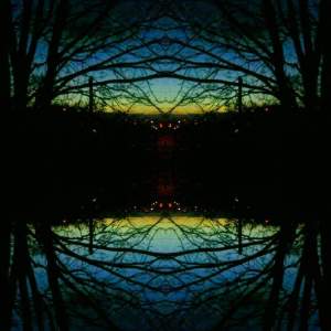 I’d played with this photo of a sunset and posted it to Facebook three years ago. I think I was mesmerised by the colours. The branches add interesting structure and the chimney and small lights show humans existence in the world. I can’t recall where I took the original photo.