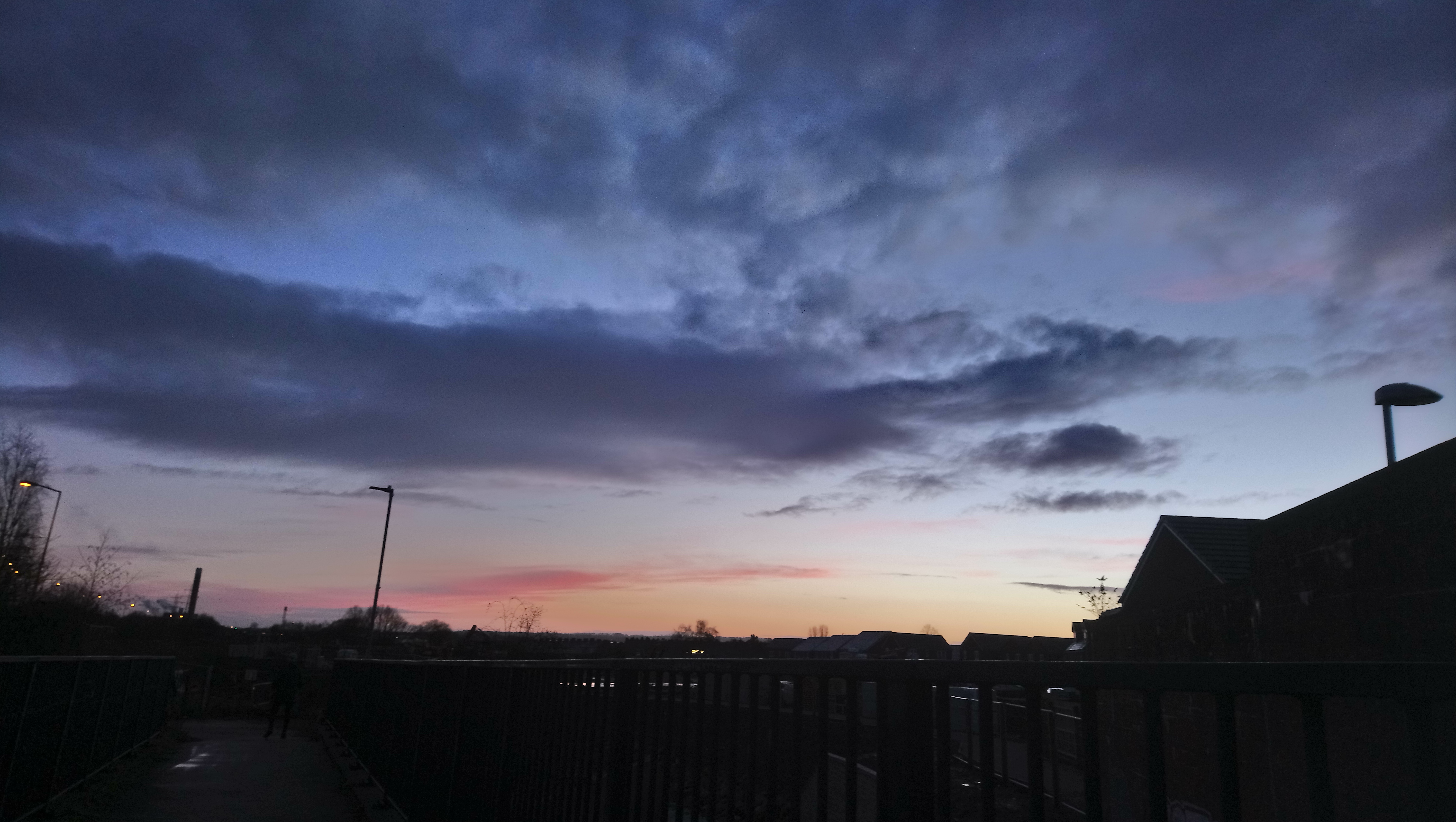 I saw this at tonight’s performance and it made me chuckle. The way the lights are set up looks like eyes and a mouth. The shadow above like a set of long wolf like ears! The pinkness is really dramatic.