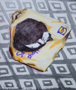 Tuesdays #bandofsketchers prompt was supermarket. My cat loves sleeping on a supermarket canvas shopping bag. It’s better for the environment too I think?