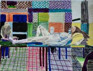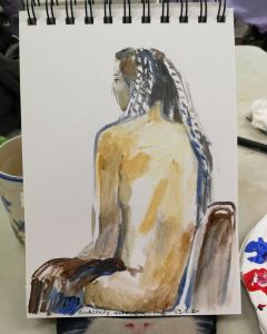 A snowy cottage (with led lights) and a flowerbed for cut flowers. Made by a craft group I’m in. The wooden model was mostly painted with white acrylic to replicate snow. I added dark outlines to indicate bricks, stone and tiles.