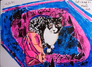 Monoprint patterns in black acrylic, randomly cut up then layered. Photograph adjusted in the photodirector app on my phone. It feels a bit like layers of celtic knotwork I think. Maybe I should glue pieces down so that they can lift up and reveal different layers.