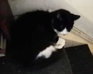 This munchkin was curled up by my bookcase at the top of the stairs this morning. He’s a medium sized cat and just about fits, he was well asleep but one of the others ran past and disturbed him. He’s like a little guard, he follows me about and keeps an eye on me. The only problem is the risk of tripping up over him. The other boy cat sleeps on a step halfway up the stairs…. And it’s a good job he has white on him or I could go head over heels!