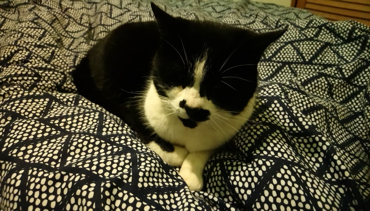 Cats know how to keep warm. The heat rises up the stairs so she is happy up there. This afternoon she’s gone out for a little walk round the garden, I think she will be back in again soon. Then she will either go back upstairs or sit on the cat tree by the radiator in the living room.