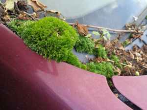 The sitting bench became a potting bench. Now it’s become a rotting bench! Moss covered and with holes. It was never varnished and the rain over a few years just got to it. One day I will try and replace it with something more solid. Sad demise of an old friend. Hubby used to sit and read the paper on it.