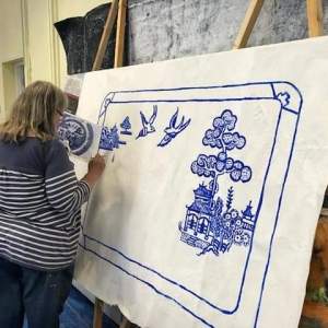 This is a picture of me painting a banner for a mystery play that we did a few years ago (based on the willow pattern). I love getting involved in these projects.