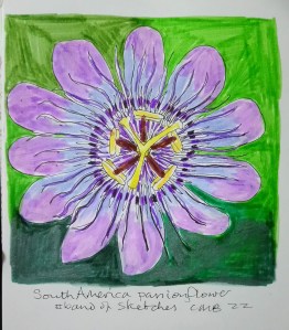 Today’s #bandofsketchers prompt was South America, I was looking for something unusual and found out that Passion Flowers are native plants of South America. I have to say I’m amazed how complex they are. This is a twenty minute sketch.