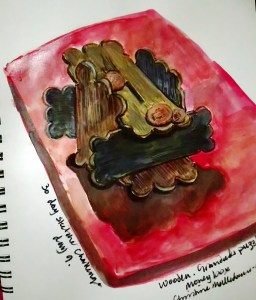 Wooden puzzle box my grandfather made, he was a carpenter. I think I get my artistic abilities from him. It only opens one way. Watercolour and pencil on cartridge paper. It is a bit dark but I hope you can see it OK. Day 9, #30daysketchbookchallenge.