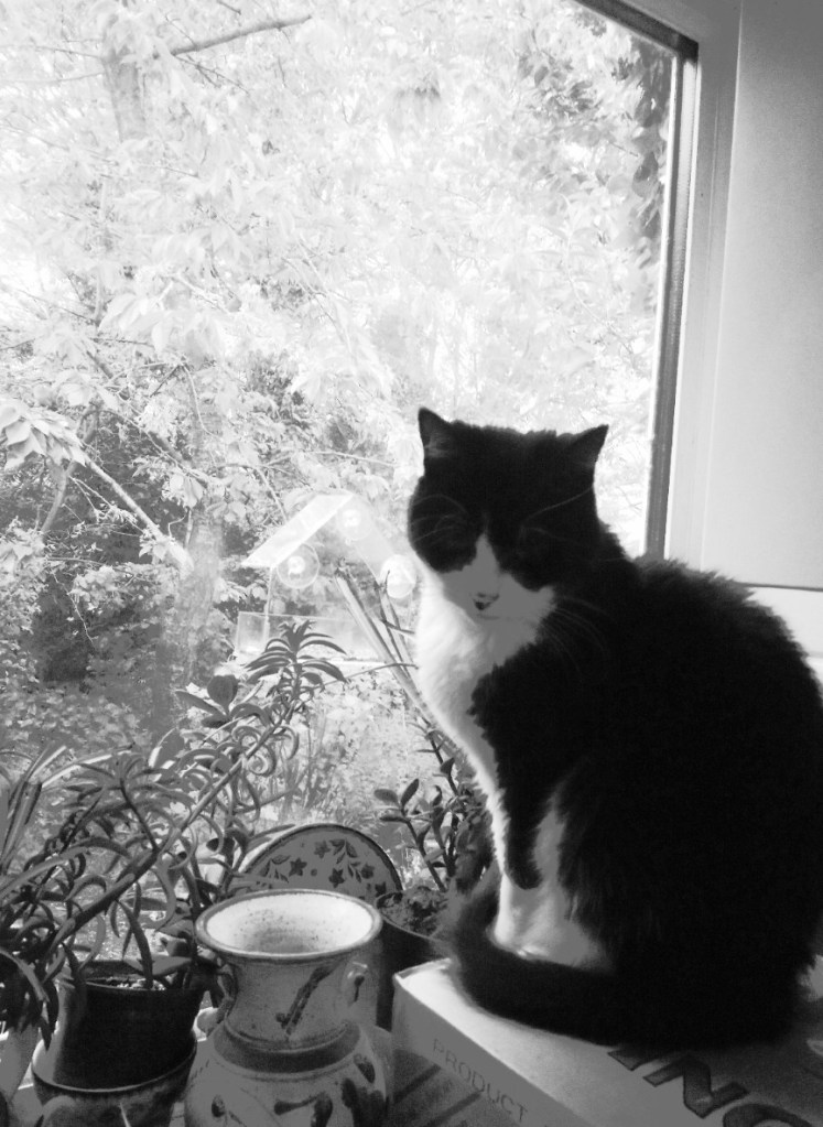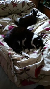 While I’m caring for an abandoned cat I must also continue to care for my other two. They have both been patient with me but I do feel guilty especially for my boy cat who loves to be loved. I think he’s a little jealous of our interloper and because he’s smaller than outdoor boy he sometimes takes it out on his sister. There’s been a lot more chasing and play fighting than before. That they have been so calm about the new cat comes, I think, from living with eighteen other cats (I took them in as rescue cats). I think they will all integrate, just wondering what we will do if we go away on holiday.