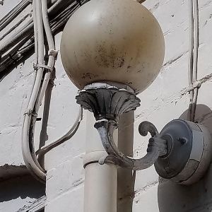 Old light and fitting at Spode factory site, taken 4? years ago when I still had my studio there. I like the fact that the photo looks black and white apart from the pale grey/browns on the globe shaped light shade.