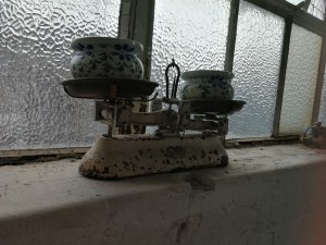 In the washroom at Spode studios site. A series of plants and objects are clinging to life on the old brick windowsills. I like this in particular. The two ceramic pots just look right sitting on top of the weighing scales. The frosted glass sets it off. It’s OK in the summer but in the winter it’s freezing. The plants still survive though.