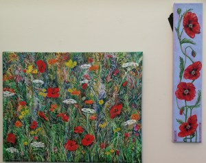 Oriental poppies (large reds and pinks), californian poppies (small and orange) , Welsh (yellows), Himalayan (largish, pale blue) wild British poppies (reds, pinks and white), some are called Shirley’s mixed or ladybird with black splodge.