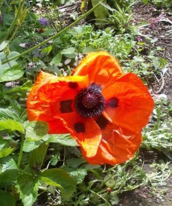 On the pavement outside our garden this little beauty I’d flowering. I think its out of a packet of wild flower seeds that my husband scattered a few months ago. It’s a surprise as the majority of poppy’s we have in the garden are yellow “Welsh” poppies. I love the crinkly way the petals expand. I’m hoping we get a few more soon.