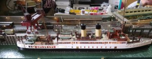 When the jelly is set I mix up a pint of blancmange with boiling milk (you can use custard) this comes in a variety of flavours. I use a sweetner instead of sugar in the mixture, one that doesn’t have an aftertaste. Once the liquid has been boiled and thickened I put the saucepan in a larger one filled with cold water. The blancmange cools enough so that it doesn’t melt the jelly when you add it to the top.