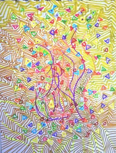 I started the previous drawing like this. It was going to be a background for something else, so the pattern is spread across the whole surface. I might recreate it on a canvas in paint. Not decided yet. I have an exhibition coming up in November and I’m thinking of creating a series of abstracts based on some of these designs.