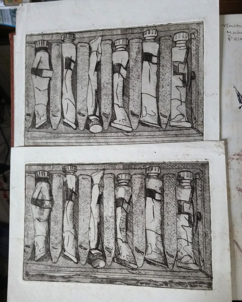 I was careful not to gouge holes in my fingers doing this, the tools to cut out the lino are extremely sharp. I ordered the kit over the Internet and it came with the tools, an inking tray, a roller, a hand tool to push the ink onto the paper and several cutting tools.