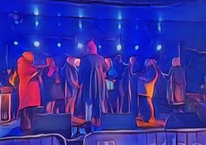 We were dropped off while my friend went to find somewhere to park the car. We had to fight our way through a packed crowd to get to the stage, so when we had finished our set we decided to listen to a couple of songs from the next act, then get going. Unfortunately this meant walking to the far end of the site and climbing over a low fence. When we finally made it to the car all the vehicles around us were in a stationary queue. The cars were moving a foot or two every few minutes. I think we would still be there if a man controlling the traffic explained there was a back road off the site! It took us one and a quarter hours to drive 400 yards!