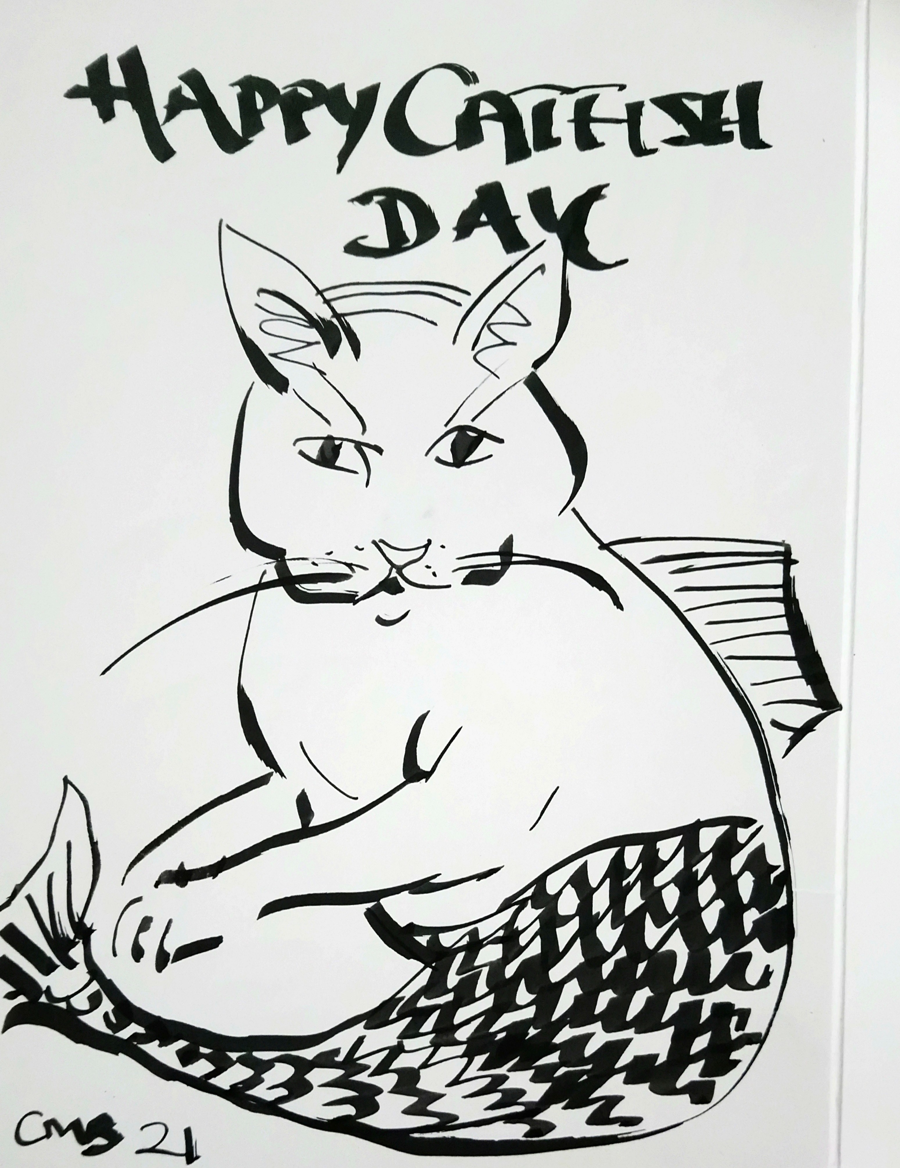 Now the #30daysketchbookchallenge has finished I’ve got to find something else to draw… Why not cats or surreal versions of them? My hubby asked me to draw him a catfish.. And my indoor boy cat was sitting on his cat tree platform so I did a quick sketch of him.