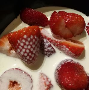 It’s not Summer, not even Spring, but Strawberries are out in the shops and are quite tasty. I had some tonight for tea with cream. I did sprinkle a bit of sweetner over the top of them.