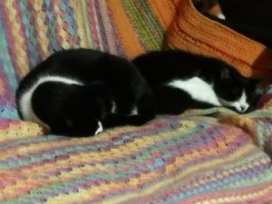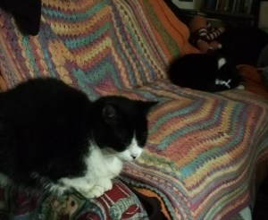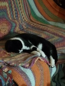 He’s on the edge of the settee and looks like he might slide off! Fast asleep, taking up all the space. I’d like to sit there but I’ve been ousted from the space by this cat! I went to make a coffee and he snuck up. I have a seat on an armchair. And as if on cue, my girl cat just came up and tried to sharpen her claws on my leg. She’s taken over my footstool. Cats rule in this house!