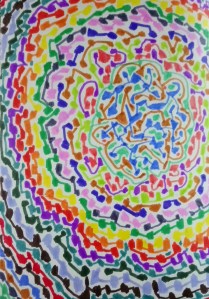 we have had to create our own lexicon of shapes to create an alphabet. But when we did it we didn’t know what letters we would be given for each challenge. in this case i just have 90 degree and obtuse angles, little squares and moon shapes. How do you fit them together to make a face? And as the subject was a self portrait I didn’t know whether to do something current or a piece based on previous work. In the end I based the final drawing in black and white ink pen, on my 1981 self portrait from when I was a fine art student. The resulting picture doesn’t really resemble the original (not publishing them here) but it was an interesting experiment.