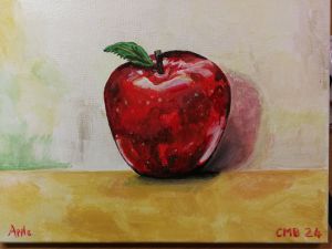 Picked up some paints today including metallic. Some of a group I’m in are doing pictures for a food festival and so I thought I’d join in. Acrylic on canvas. I think I made the apple look shiny, based on a previous digital drawing.