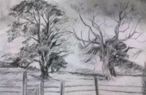 Twenty years ago I sketched these trees. I think they were probably oaks, a little old and tattered. I’d love to go back and see if they are still there, if only I could remember where they were!