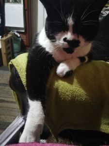 Cats can snooze anywhere. I can hear this one snoring next to me. But I just lie awake. A million thoughts tangle in my head, health issues, pain in my feet and shoulder, snoring from hubby, then there was hunger, thirst. Went and had a slice of toast and a decaff coffee. I did finish a couple of paintings. When I went back to bed I did what I sometimes do and put the radio on to murmur me to sleep, but last night it was too interesting. Even the shipping forecast ‘Dover, Wight, Portland, Plymouth, North backing North West, 25 miles, good, occasional rain and mist. Two to three.’ Something like that. Then there’s a news briefing, farming today, a prayer for today, tweet of the day (birdsong) then into the Today programme. Radio four. Somewhere around six thirty I fell asleep only to be woken at ten by my hubby who had slept for twelve hours! Argh!