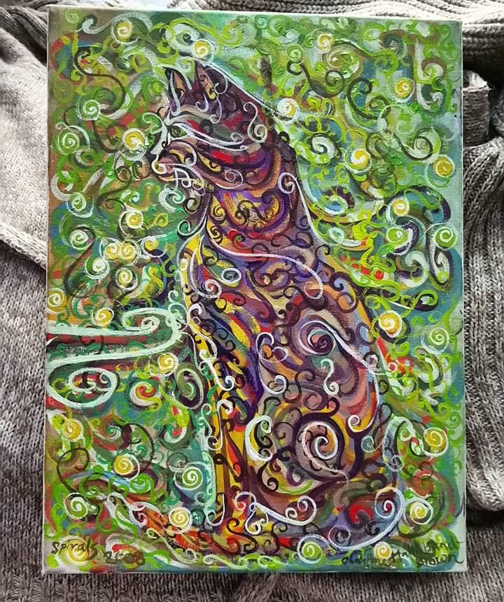 Fireworks, galaxies, water spinning in a plughole, staircases, tornadoes, cloud formations, patterns in art. Its a, recurring theme in my art and I also love celtic patterns and art nouveau designs….