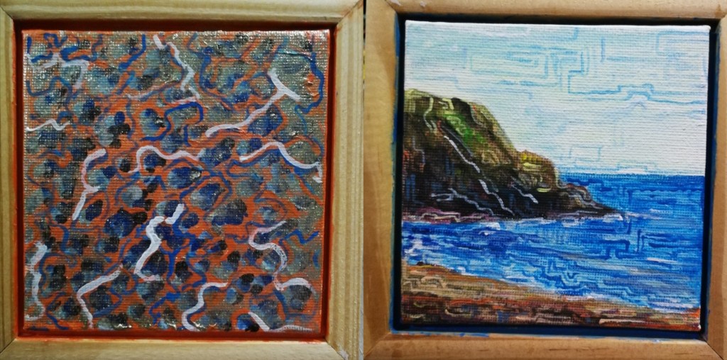 I’m just noodling and doodling some different ideas. Abstract and abstracted landscape. Then I’ve got a few miniatures to work on….