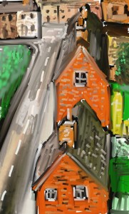 Today’s #bandofsketchers prompt was street. I painted a street scene when I came to Stoke 40 years ago. I did a copy of it recently and I have a photo of the work in progress on my phone. As this is a digital sketch it’s not accurate and rather messy, but I thought I’d give it a go. Artrage app drawn with a stylus.