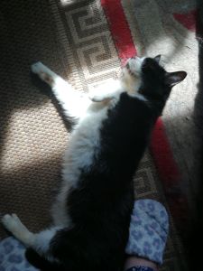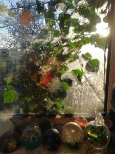 Sun glancing through the stairs window in January. I don’t have a window cleaner and the ivy is growing up and in the way and the glass ornaments on the windowsill. But I like the chaotic jumble of colour and shadow. I’m not very organised about anything anymore. By the time I’ve walked upstairs I’m ready to fall over. Dusting? I haven’t done that in a while. I need to get my act together. Anyway not much else to be said.