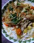 Red curry, rice and noodles from Sawadee Thai taste in Hill Street in Stoke, Stoke-on-Trent.