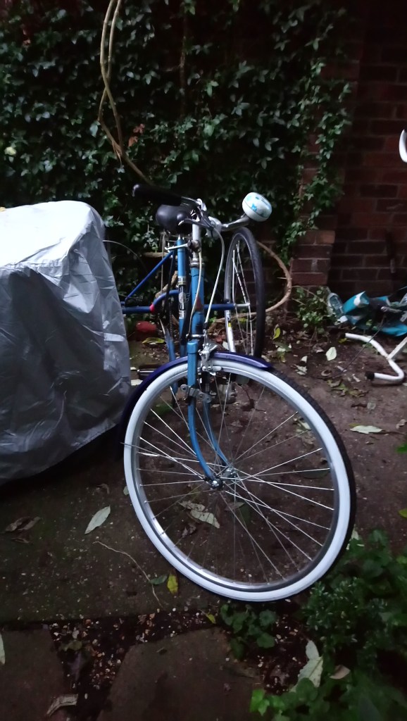 We gave them a ring and were told to bring the trike in. When we got there, there was a lot of sucking of teeth and questioning if they could do it? But yes, they would see what they could do. Then on Monday they rang, they couldn’t source the right size wheels, (26″), so they suggested it might not be worth fixing, which was understandable. But I argued that it was a historic machine. It had been ridden in time trials and my hubby had come third in a 25 mile time trial about thirty years ago. It would be a challenge. Also they could maybe use 700c wheel rims and spokes instead? Cue chat with the mechanic. Yes they would order them in.