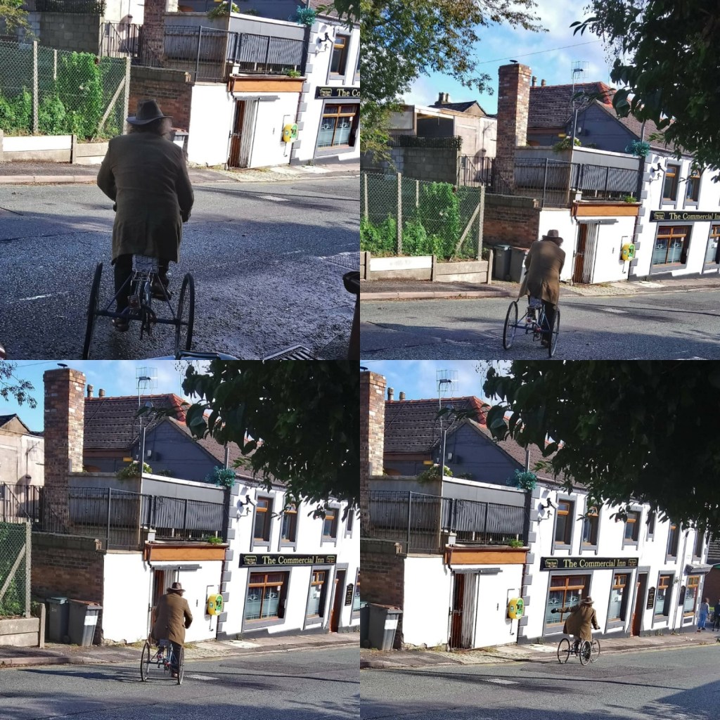 Setting out in the sun to meet a friend on his allotment. I got a message later that one of his wheels has collapsed? Luckily it’s only about a couple of miles away. What you can’t see is that he’s on his sandals! I tried to get him to wear his shoes… Weird! I hope the ground isn’t too wet.