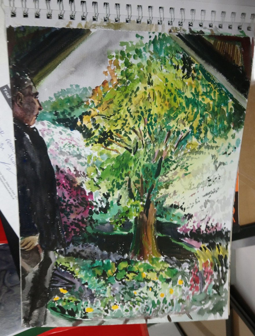 I was just looking through an old watercolour sketchbook with landscape scenes I did a while ago. I think one was done in 2018, but have no recollection of doing the others. I know the one with the harbour wall and blue sea is Polperro? The boats picture was done as a quick sketch. The flowers and hills one is called Storm warning. The two lake paintings were done at Trentham Gardens. The yellow sand and dark rocks is at Bovisand in Devon if I remember rightly. The figure looking out of a Summer house is my partner looking at the view at the Dorothy Clive garden.