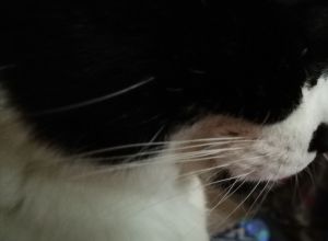 They are also used to express the cats emotions. When I try and stroke my cars cheek the whiskers pull backwards. When they are interested or annoyed the whiskers come forward, especially when sniffing something. And they are supposed to stick out sideways to measure the size of a gap they can get through (although cats are thinner than they look, you can see that when they get very wet!). And don’t forget the whiskers above their eyes too..